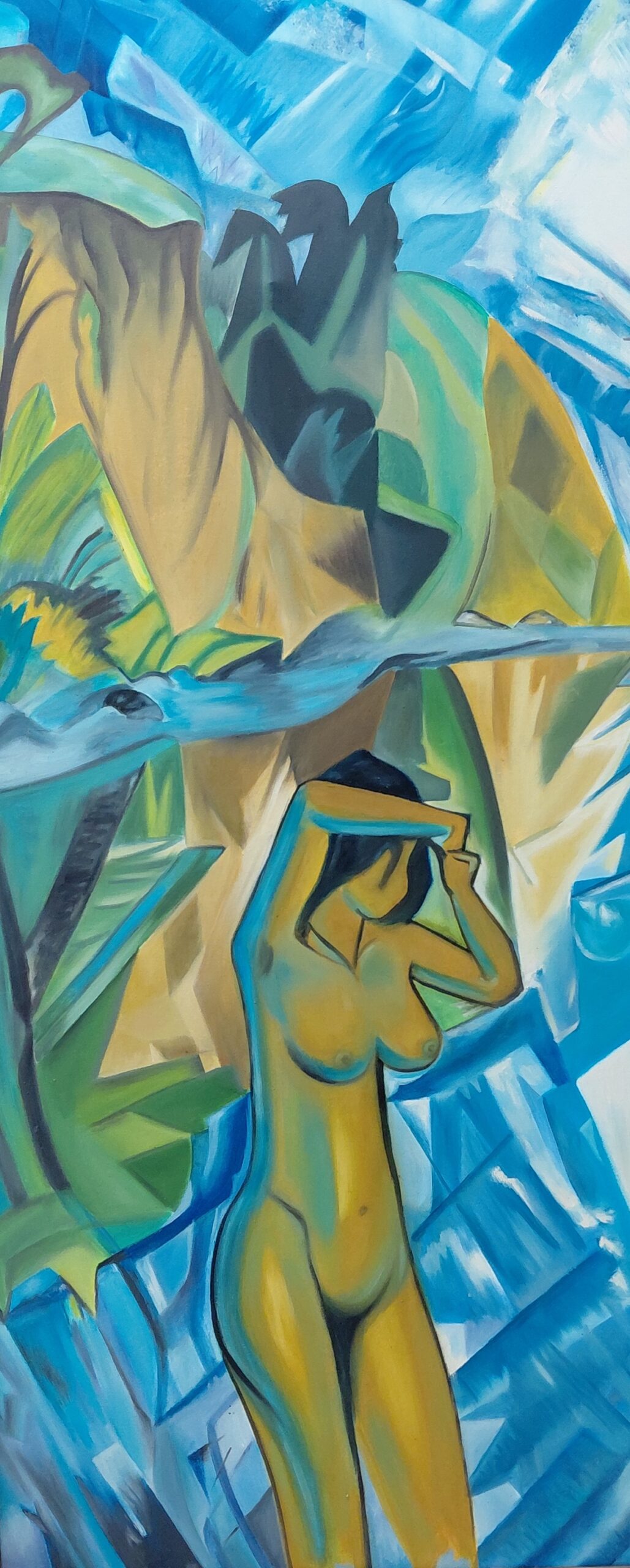 Mulher nua tomando banho de cachoeira